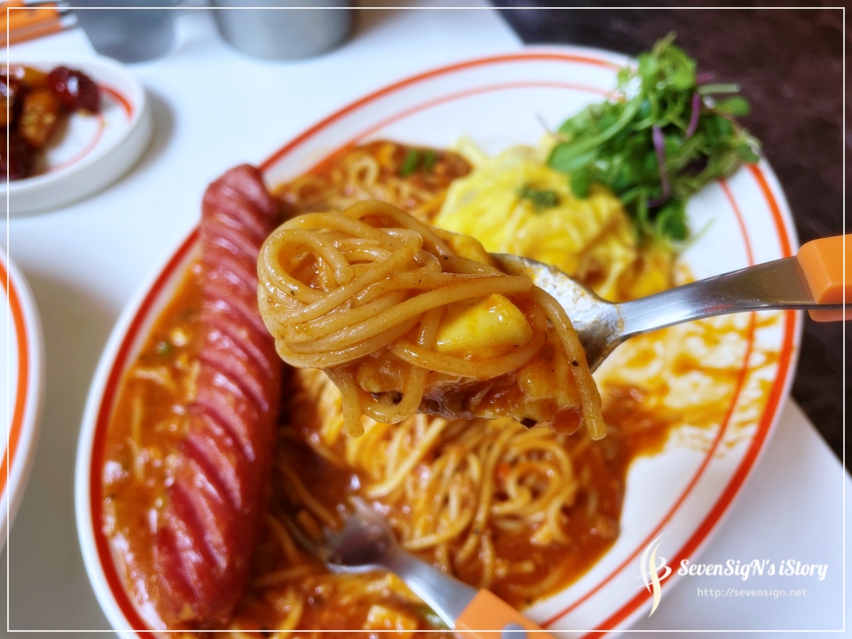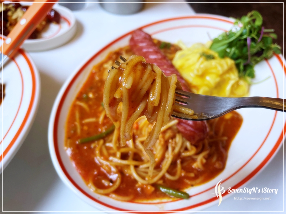 저는 파스타 with 오므라이스 메뉴에서 비교적 평범한 미트 파스트 오므라이스로 골랐습니다.
