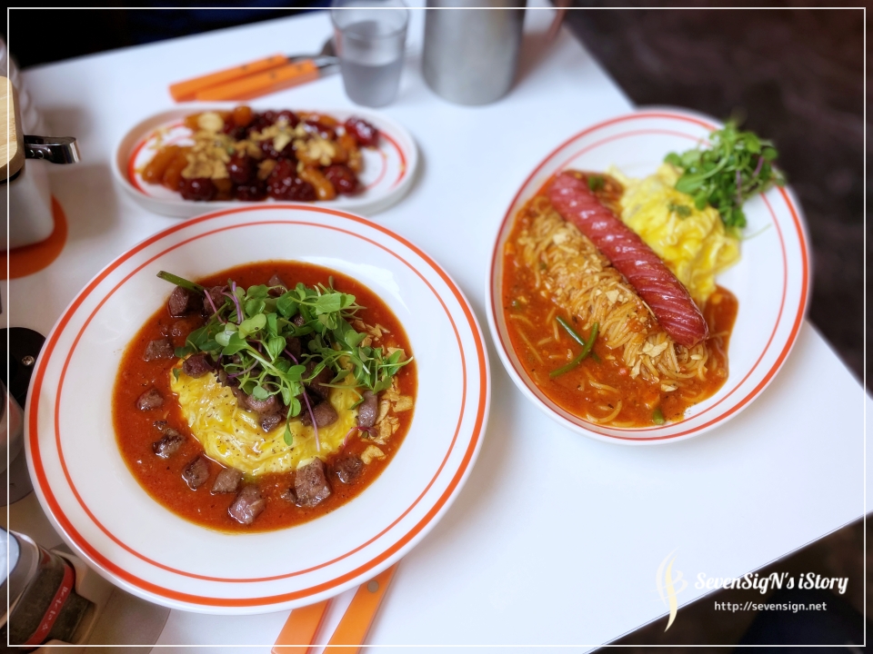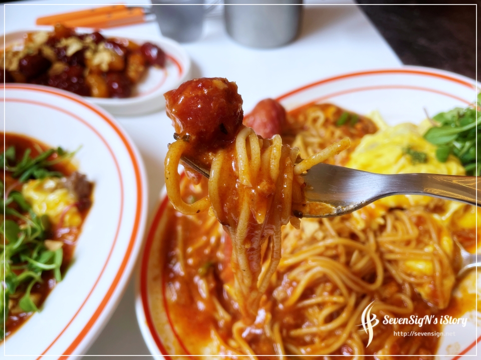 얘기한대로 파스타도 맛있고, 오므라이스에 파스타를 올려 같이 먹어도 맛있게 즐길 수 있더라구요.