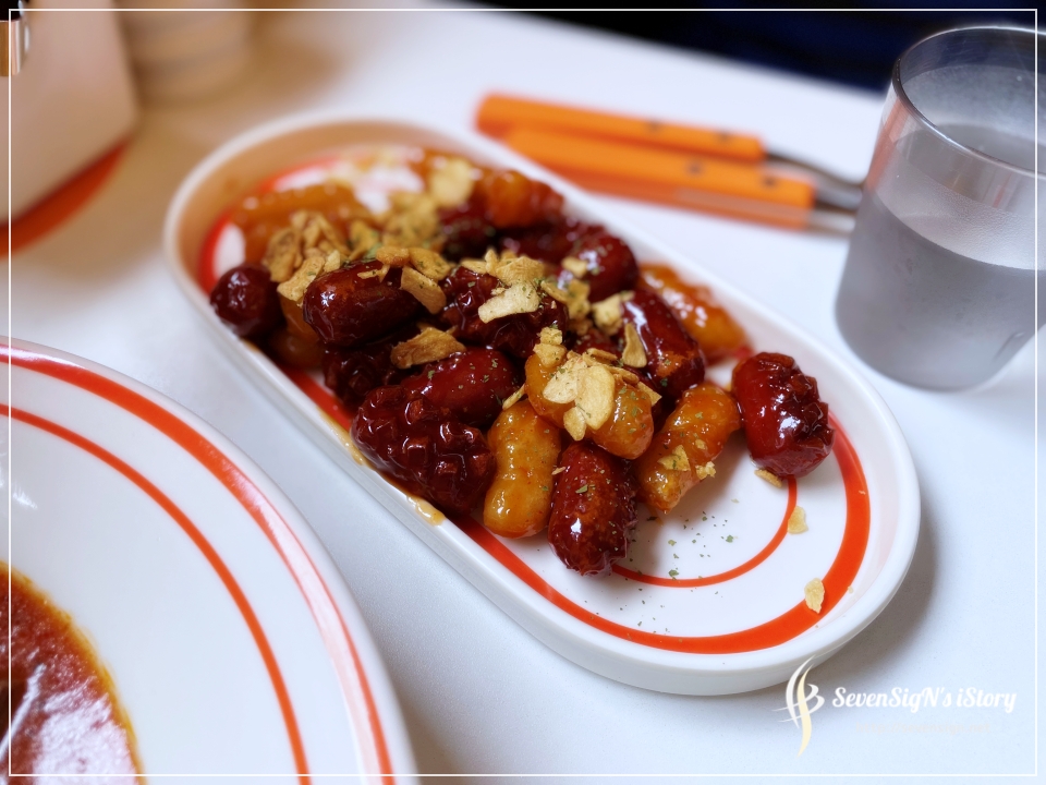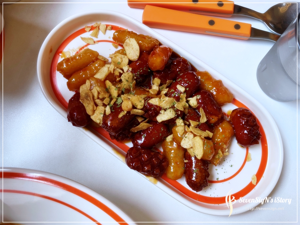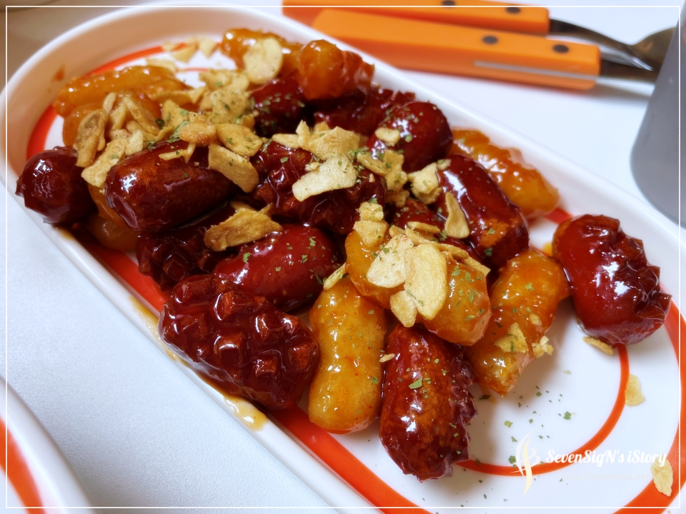 먹기 좋은 크기의 소세지와 떡이 소스에 버무려져 나옵니다.