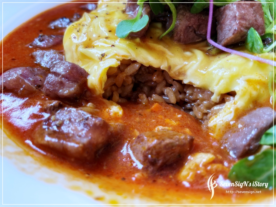 먼저 부채살 스테이크 오므라이스가 나왔네요.