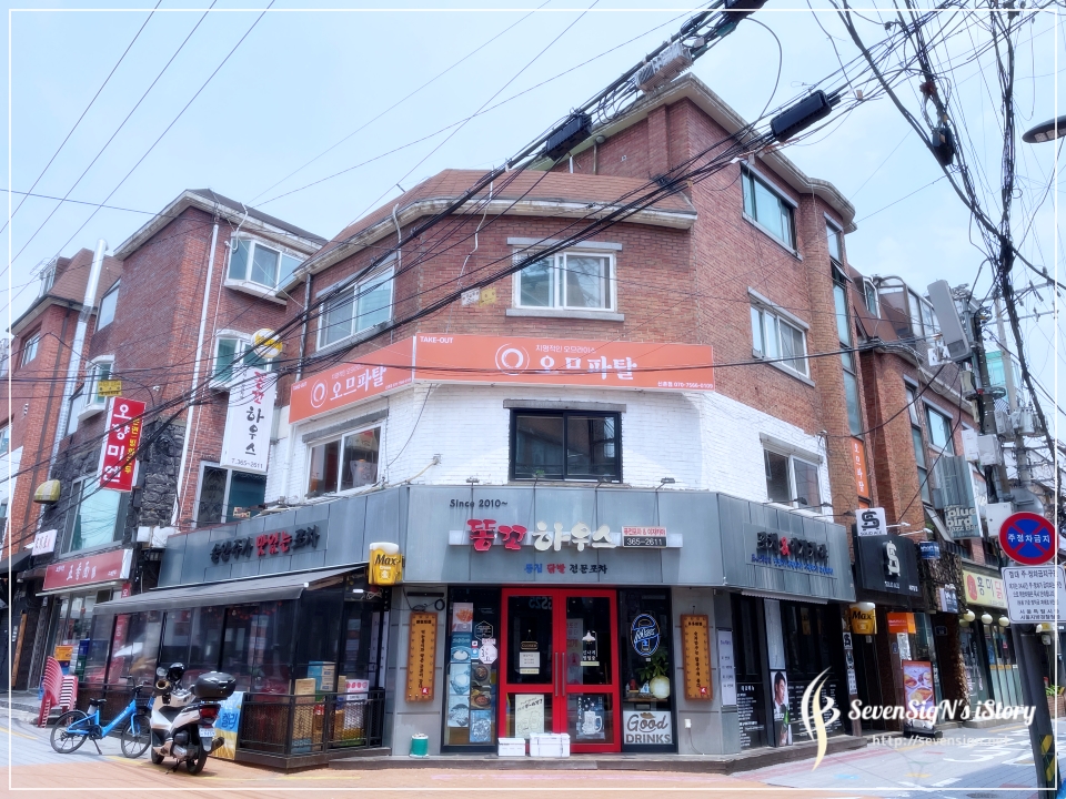 오므파탈은 신촌역에서 도보로 5분정도 거리 밖에 안되는 곳의 건물 2층에 있습니다.