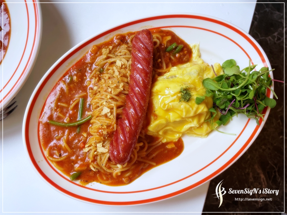 저는 파스타 with 오므라이스 메뉴에서 비교적 평범한 미트 파스트 오므라이스로 골랐습니다.