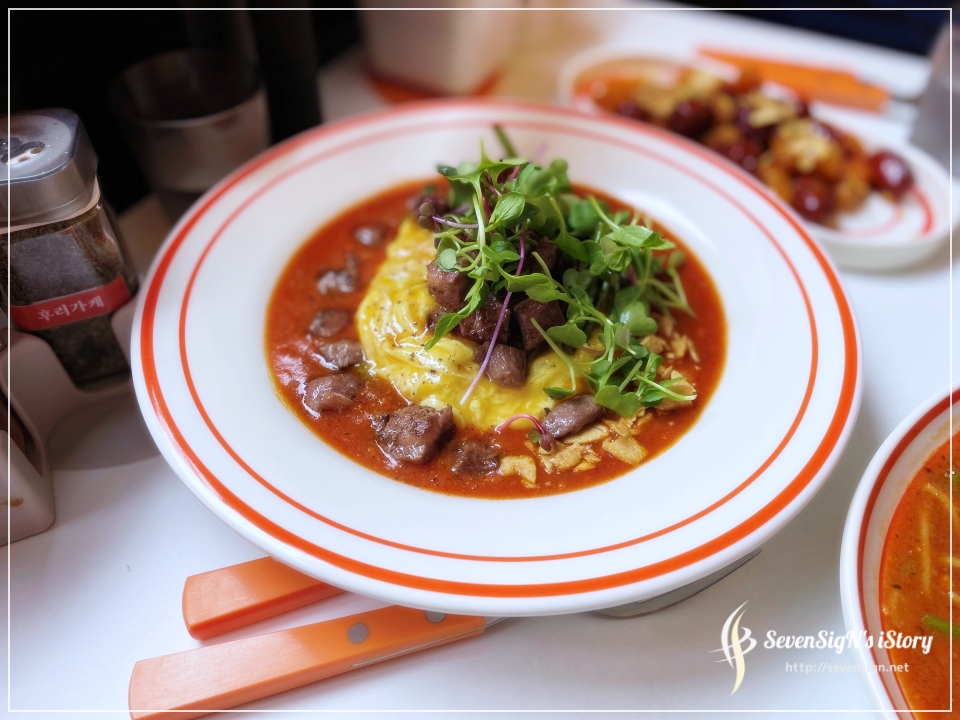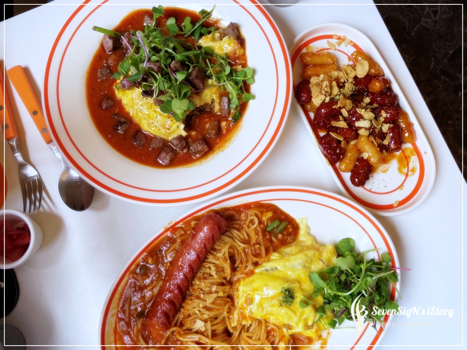 얘기한대로 파스타도 맛있고, 오므라이스에 파스타를 올려 같이 먹어도 맛있게 즐길 수 있더라구요.