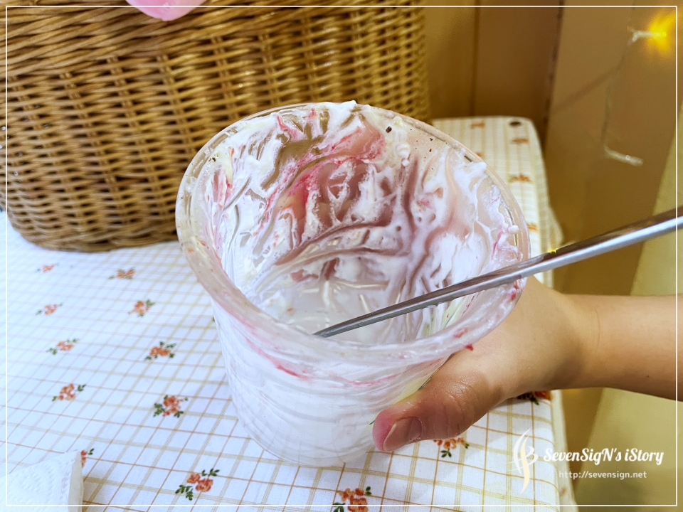 아래는 하얀색깔의 크림이 나와서 떠먹어보고 아이랑 저랑 둘다 놀랐는데,