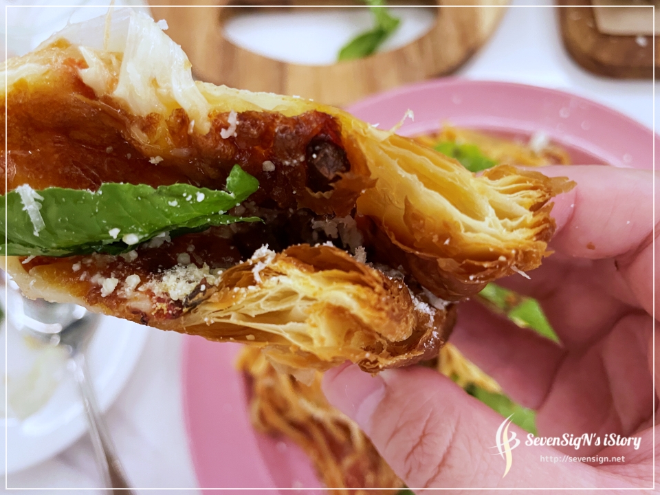 가운데 녹아있는 피자와 함께 페스츄리의 부드러움이 함께 느껴지는 피자인데요