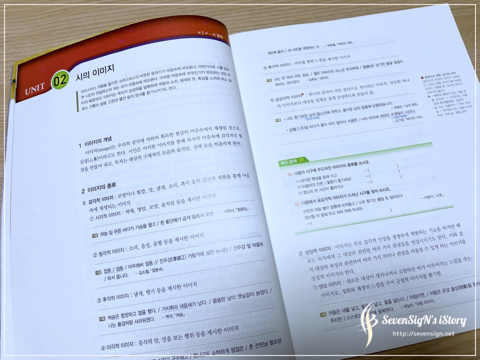 단원별 개념들에 대한 설명과 함께 확인 문제들로 국어 문학에 대한 기초를 쌓게 되는거죠.