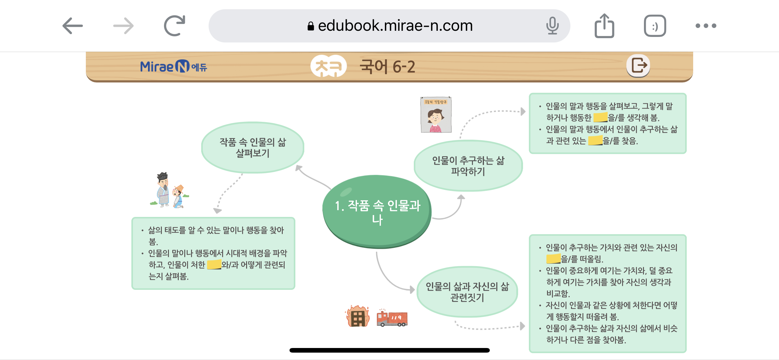 초코국어 6-2는 교과서에 실린 작품으로 공부를 하도록 되어 있는데