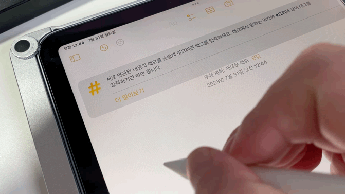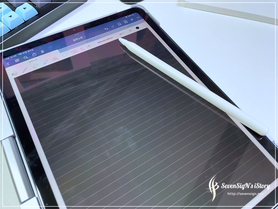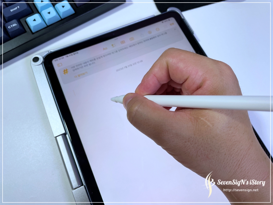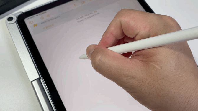 | 전 강화유리를 사용 중인데 고무팁이 있는 그대로 한번 사용해봤거든요. 약간 밀리는 느낌으로 유리에 쓰는 느낌과 다릅니다. 이건 필기 해보시고 마음에 드는 형태로 사용하시면 되요. 팜리젝션 기능도 있어서 별다른 이상없이 펜으로 자유롭게 필기가 가능합니다.
