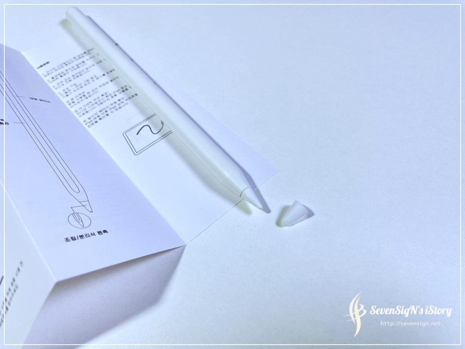 | 특이한 건 펜슬의 펜촉에는 고무팁이 끼워져 있다는 건데, 이건 필기감을 염두해둔 작은 배려인 것 같습니다. 아이패드의 필기감을 위해서 종이필름을 사용하기도 하는데 그렇지 않고 강화유리를 사용하는 사람이나 아니면 아예 아무것도 사용하지 않는 사람들을 위한 작은 장치인 것 같네요.
