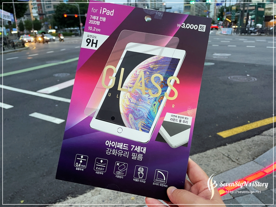 | 그냥 사용할 수 없어서 찾아보니 마침 케이스는 집에 하나 있더라구요. 강화유리는 크기가 맞는게 없어서 다이소에서 아이패드 7세대용 3천원짜리로 사왔습니다. 7세대와 8세대는 크기가 같기 때문에 사용해도 됩니다.