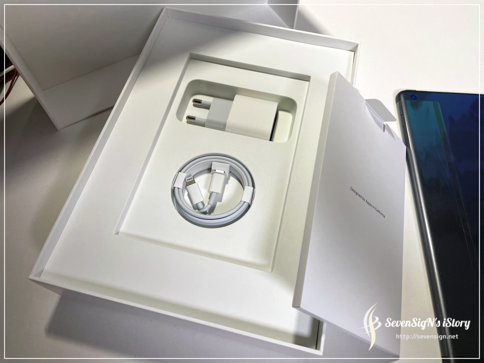 | 구성품은 USB-C타입 라이트닝 케이블과 충전기입니다.
