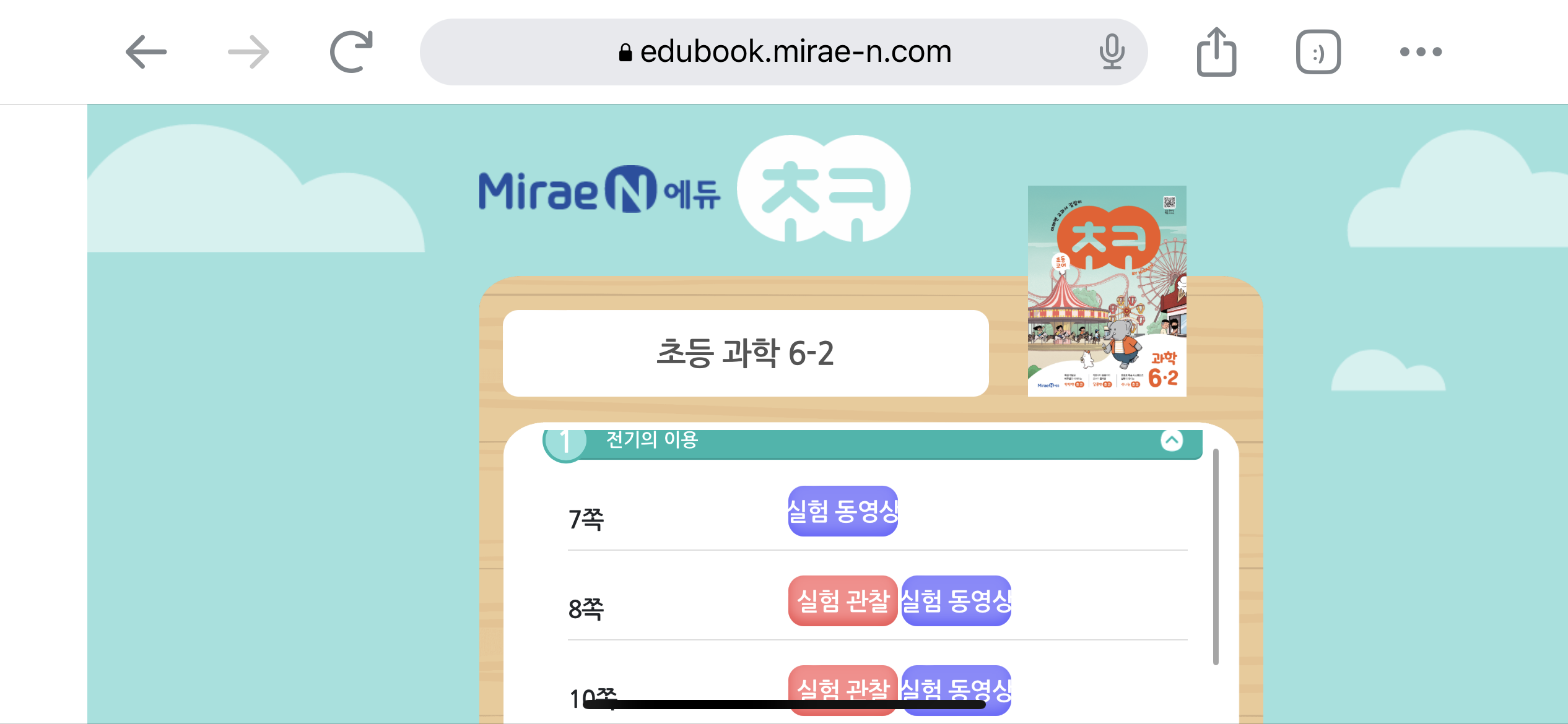 각 페이지별로 실험관찰과 실험동영상을 볼 수 있어서