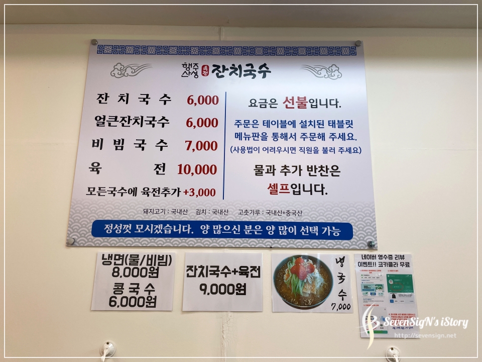 잔치국수 6천원, 비빔국수 7천원, 육전은 1만원~