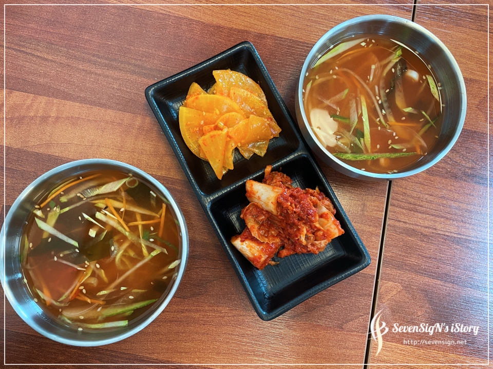 위에서 보여드린 오이냉국과 단무지무침, 김치가 있구요.