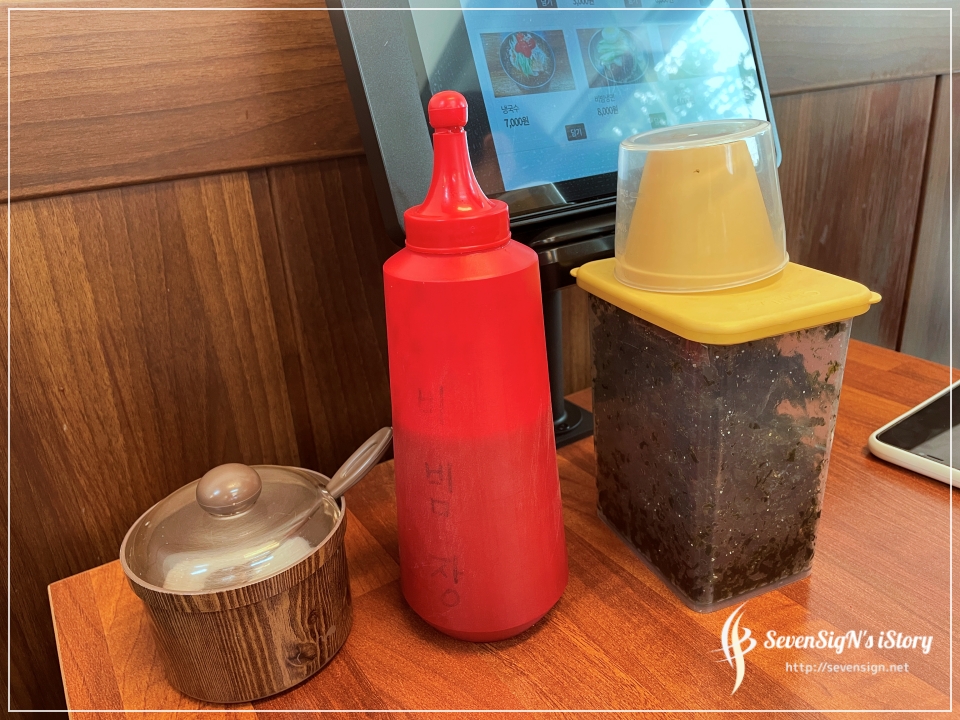 한켠에는 비빔장도 있고, 김가루도 있거든요. 김가루는 잔치국수위에 뿌려주면 됩니다.