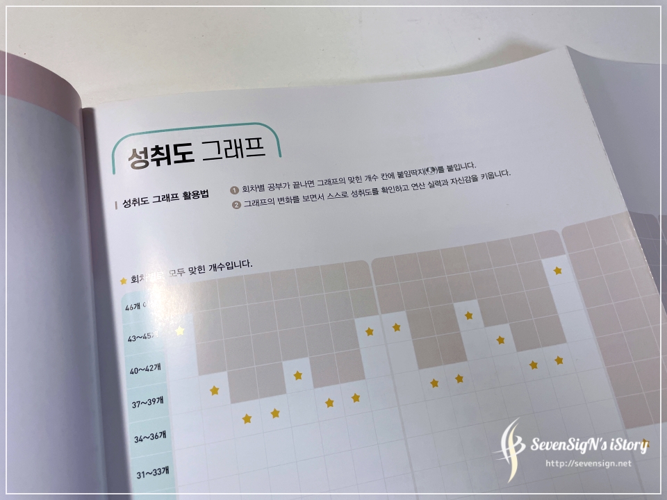 바로 성취도 그래프와 붙임딱지죠. 별건 아닌 것 같지만 스스로 진도도 확인하고