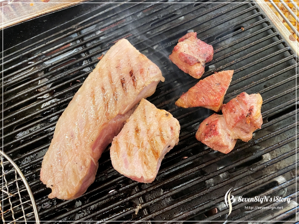 돼지고기 역시 먹기 좋은 크기로 가장 먹기좋은 굽기 상태로~