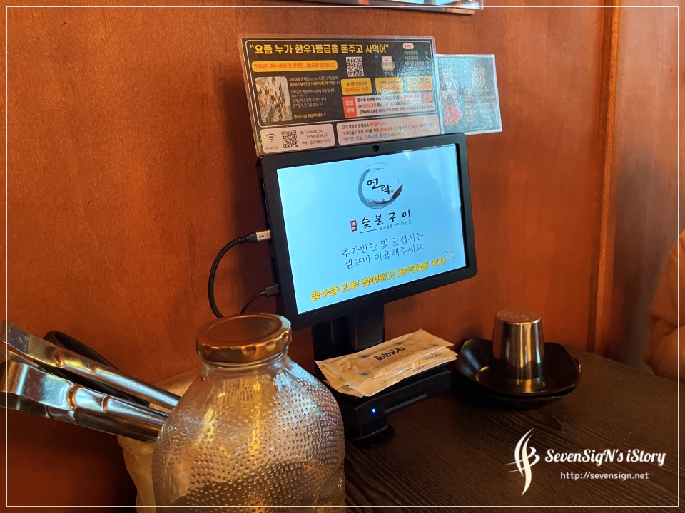 연락에서 주문은 테이블에 올려져 있는 태블릿으로 하면 됩니다.