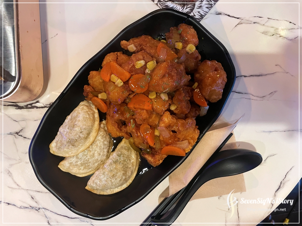 치킨가라아케 탕수육은 치킨과 만두가 함께 나오더라구요.