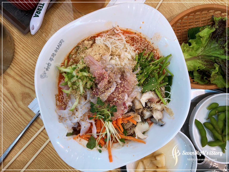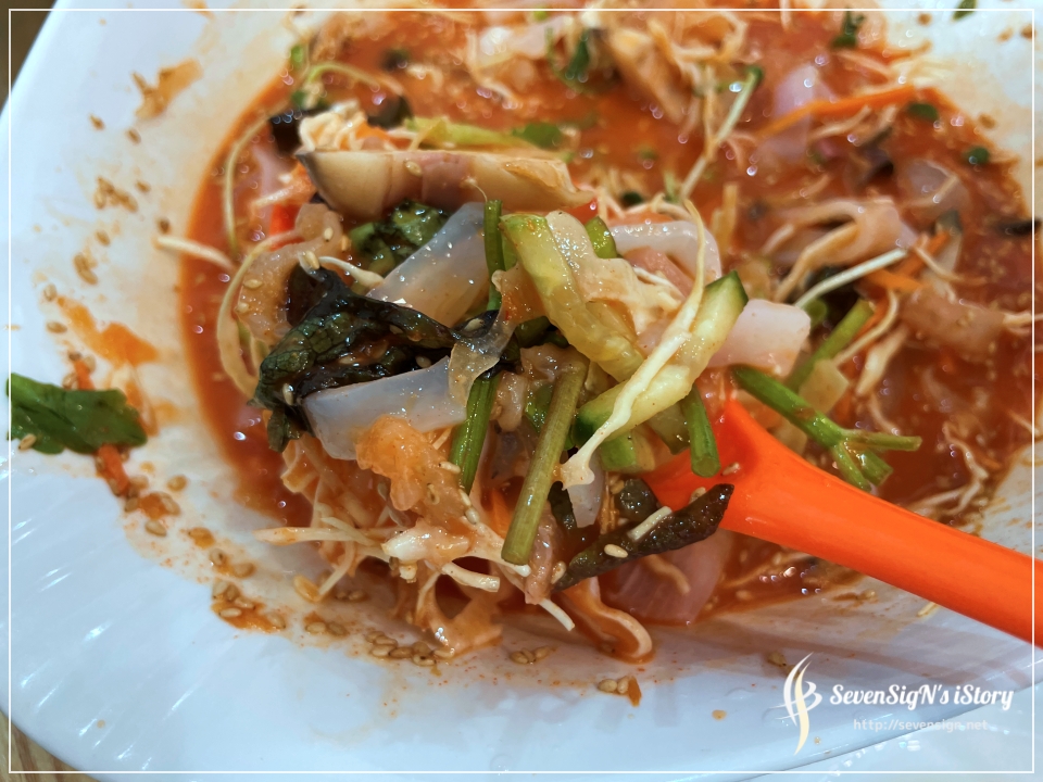다시 물회도 한입, 물회에 있던 소면도 한입~