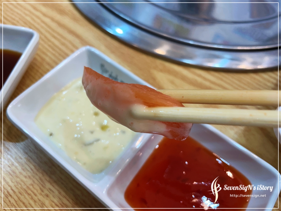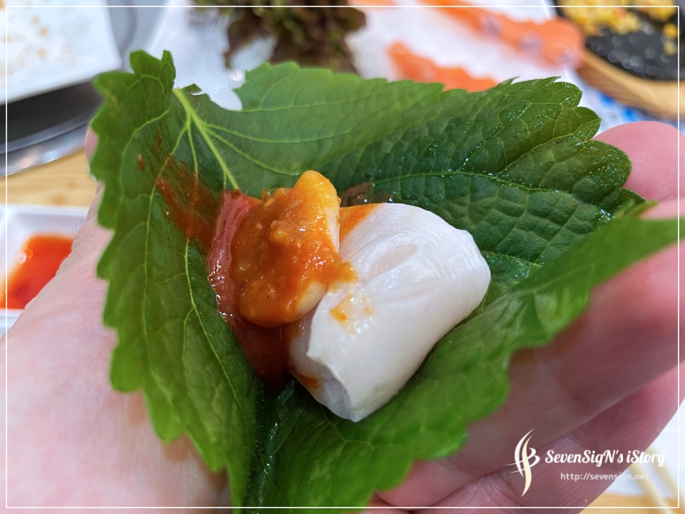 양이 많아서 연어도 한번 집어서 따로 내어주신 연어 소스에 찍어먹어봣거든요.