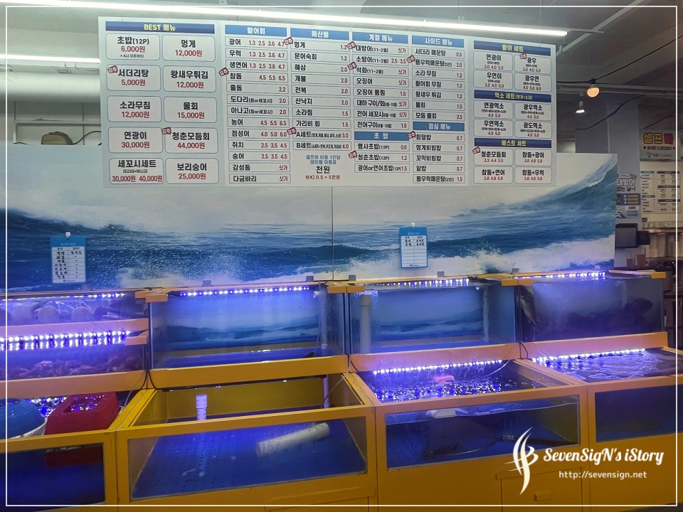 인기좋은 횟집이라 그런지 메뉴도 다양하고 횟감도 싱싱하게 보관하는 수조에 생기가 돌더라구요