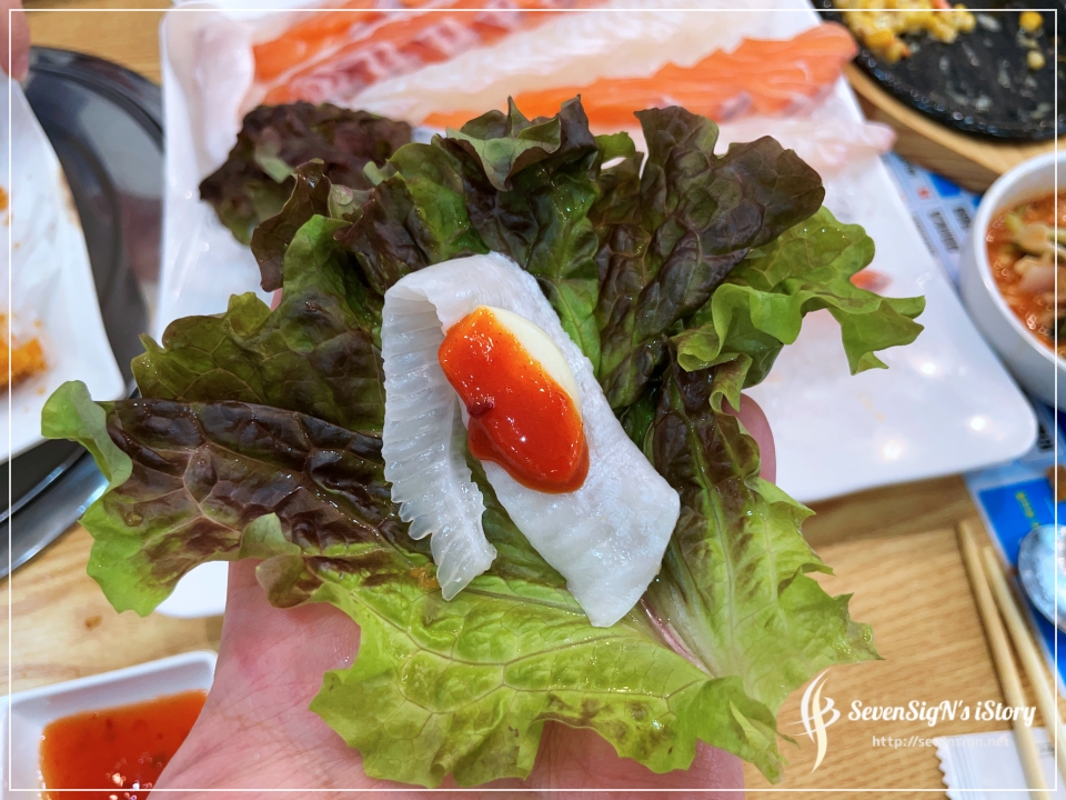 상추와 마늘, 회, 그리고 쌈장이 더해지면 이게 또 완벽하더라구요 ㅋ