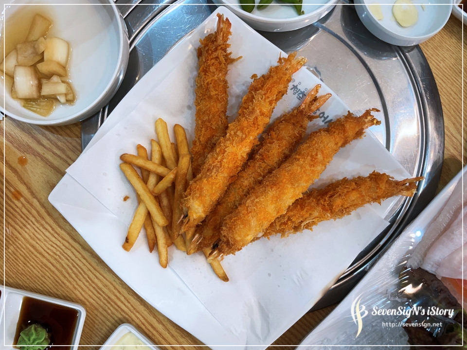 감자튀김도 함께 나오는데 이 새우튀김 완전 찐입니다.