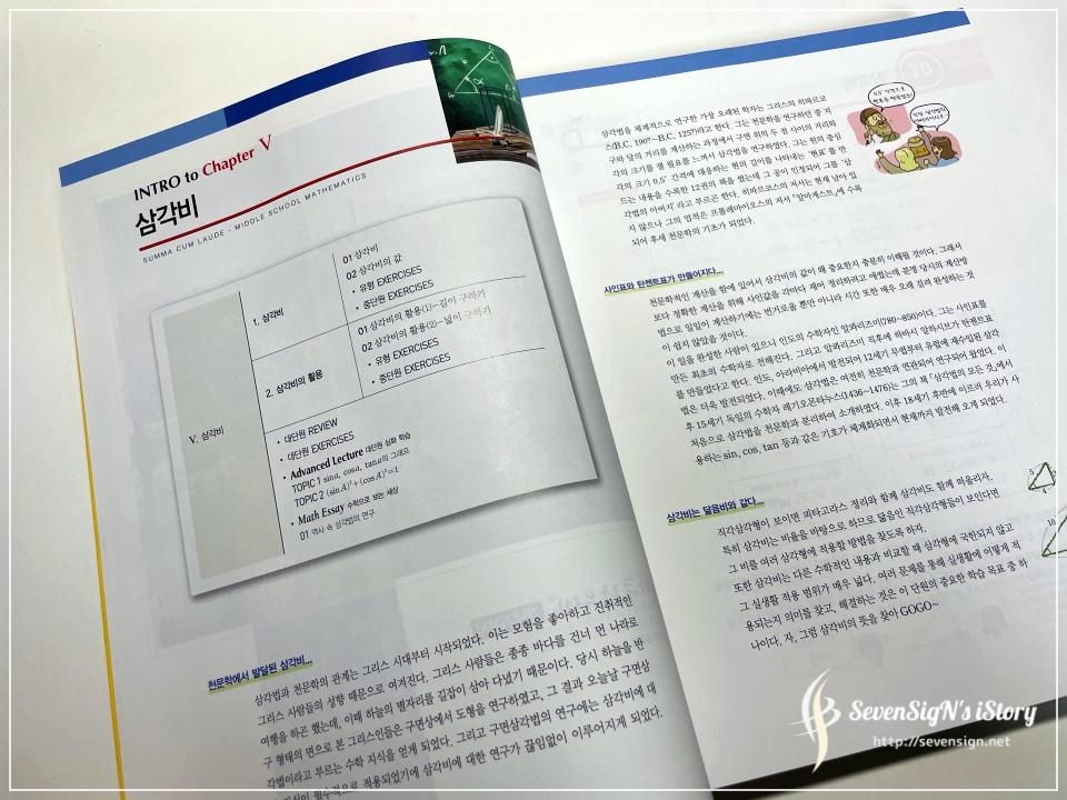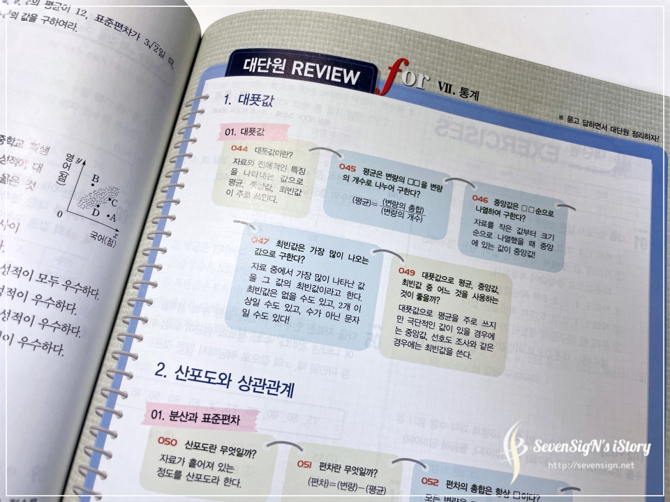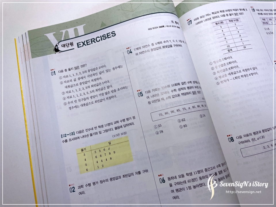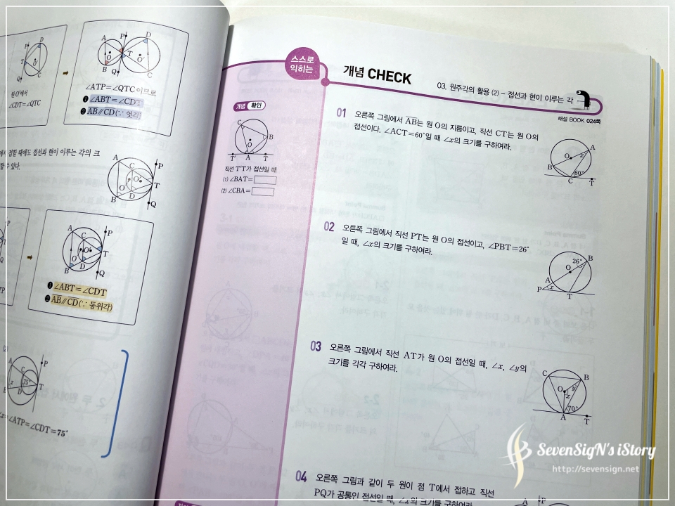 개념기본서 3-하에서는 삼각비와 원의 성질과 통계에 대해 공부를 합니다.