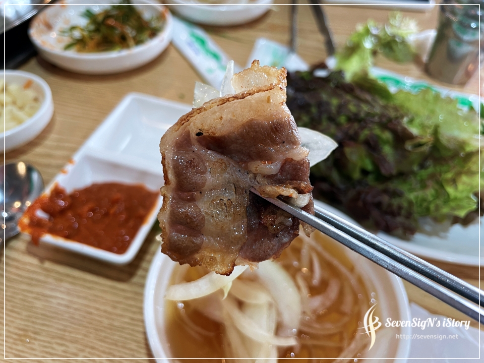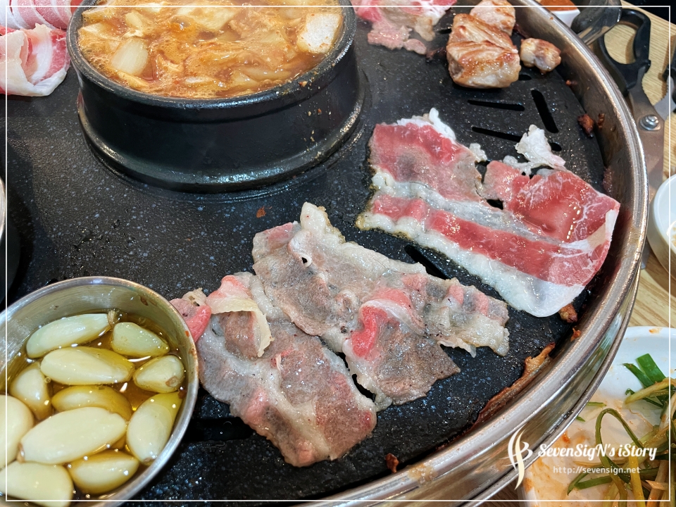 이제 슬슬 삼겹살 향이 코를 자극하기 시작하더라구요 ㅎ