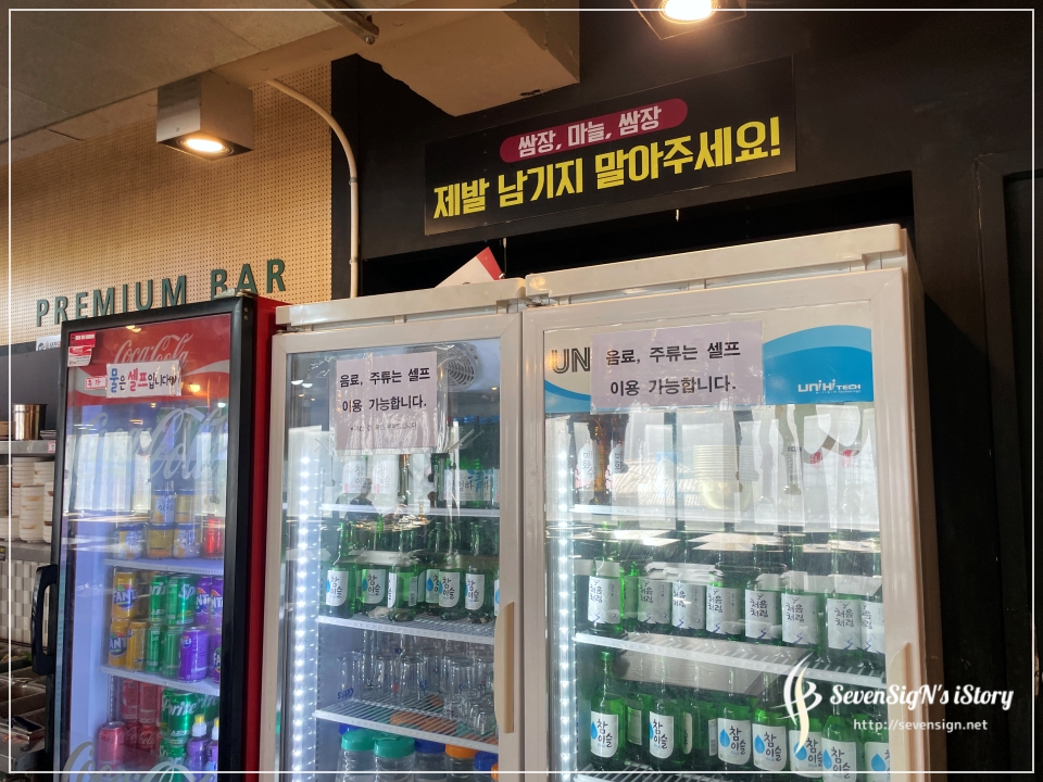 음료와 술은 셀프로 가져가서 먹고 나중에 계산하면 되구요~