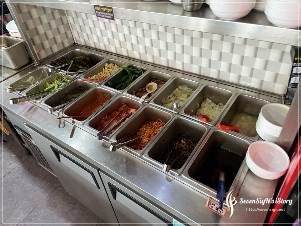 셀프바에 야채와 반찬, 소스류도 잘 준비가 되어있거든요.