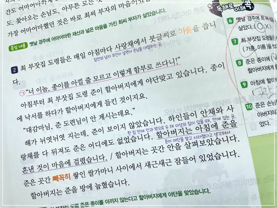 작품과 연관된 부가정보를 알아가는 재미도 있는 초등국어문제집입니다.