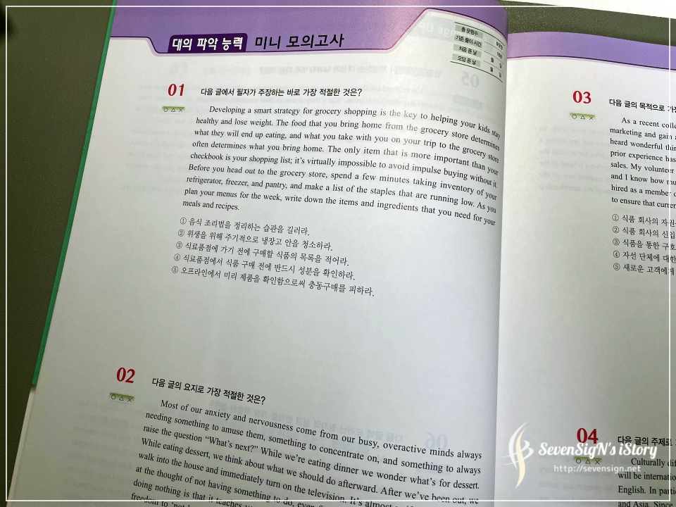 해설도 꼼꼼하게 확인하면서 학습하면 짧은 시간 영어독해력 감각을 기르는데 좋을 것 같습니다. :)