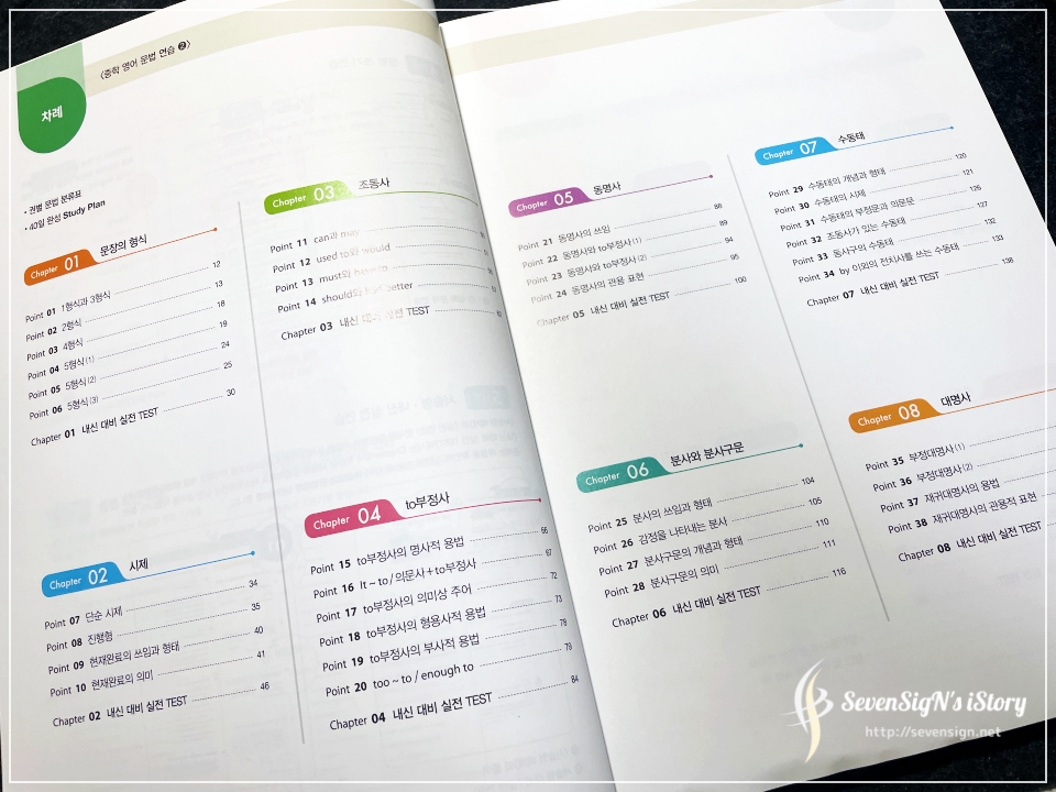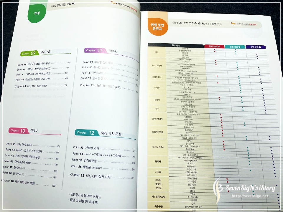 다양한 문법 개념들이 각 권별로 어떻게 나뉘어져 있는지 확인하면서