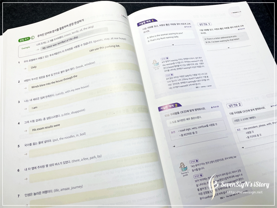 문장을 작성하는 연습으로 문법개념을 연결시켜 공부하게 됩니다.