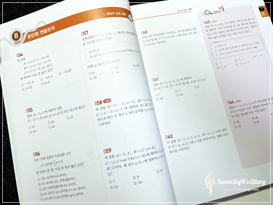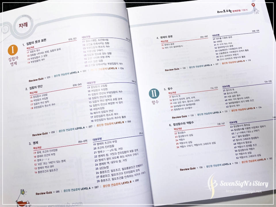 집합과 명제, 함수, 그리고 경의 수에 대해서 개념과 유형별로 세분화해서