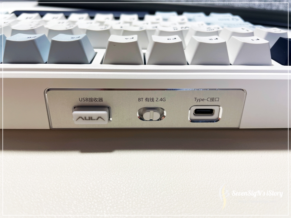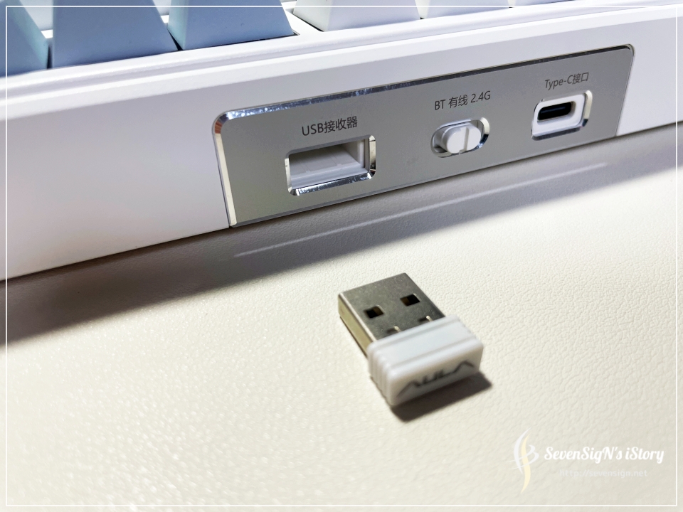 | 5만원 중반대에서 구입할 수 있는 독거미 F99는 3가지 연결방식을 지원합니다. 블루투스, 유선, 그리고 USB 2.4G 무선연결입니다. USB 동글도 키보드에 보관이 가능해서 분실할 위험이 적은 편이구요, 스위치를 사용해서 원하는 연결방식으로 키보드를 사용할 수 있습니다.