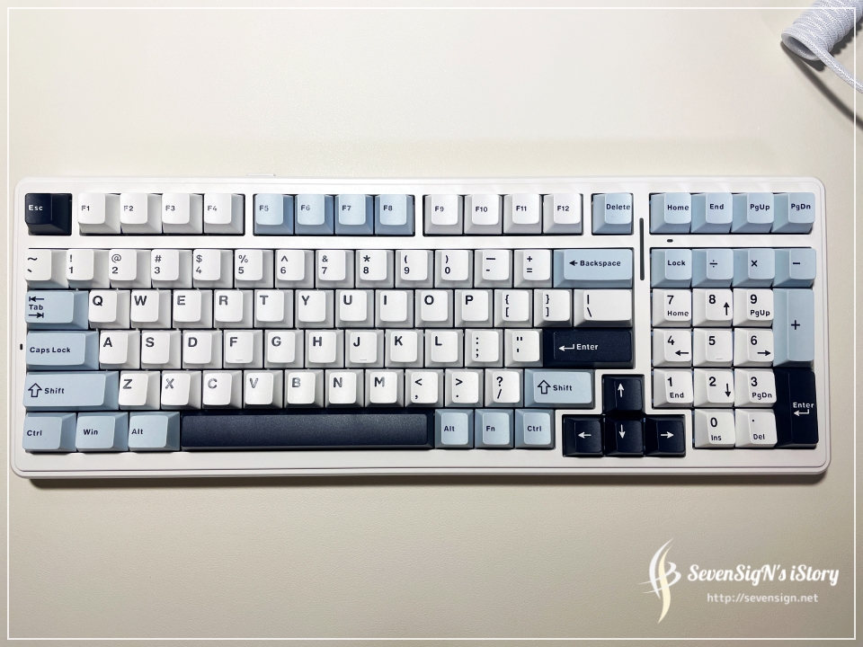| 아시는분은 아시겠지만 독거미 키보드는 키배열과 축에 따라서 모델이 다양하게 있는데, 전 F99 모델 중에서 컬러는 Smoke Blue Sea Fog 로, 축은 경해축으로 구성된 모델을 구입했습니다.