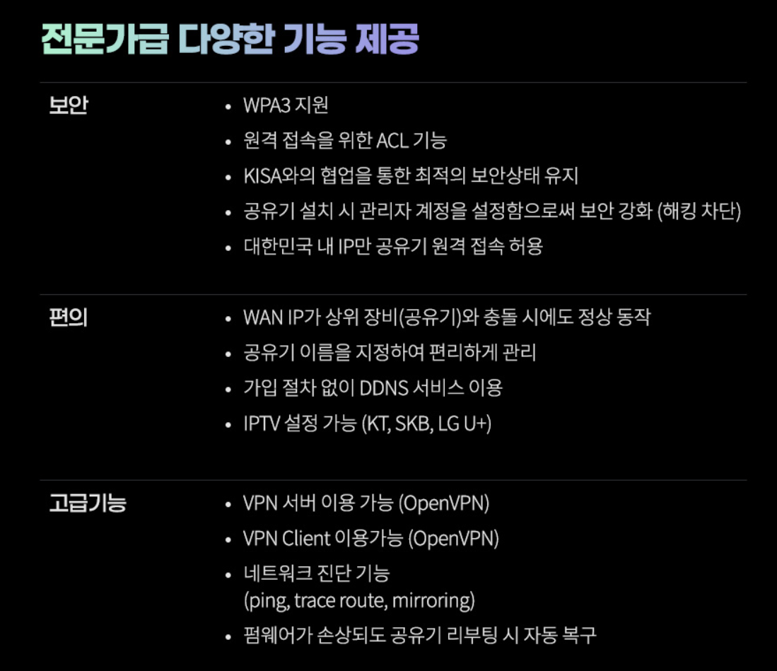 | 합리적인 가격으로 뛰어난 성능의 유무선 공유기를 찾는 분들에게 좋은 선택지가 될 수 있을 것 같네요. :)