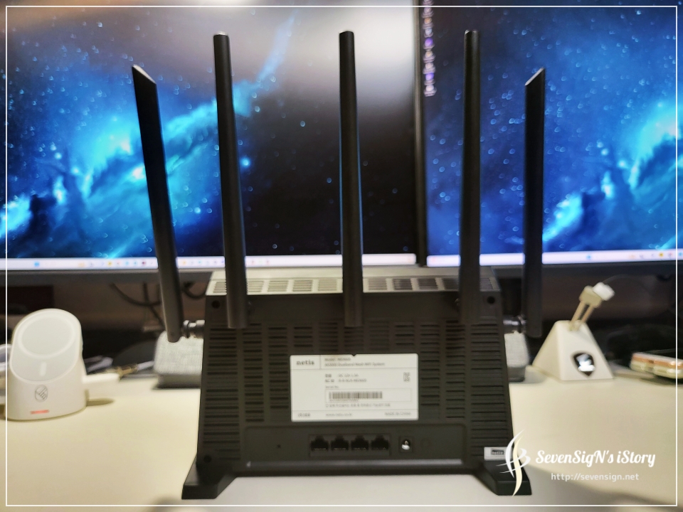 | 이와같이 듀얼밴드 802.11ax 규격의 WiFi 6를 지원하기 때문에 넓은 대역폭에서 안정적이고 빠른 와이파이 성능을 경험할 수 있게 되는거죠. 뒷면을 보면 유선 포트도 4개가 마련되어 있는 유선 역시 100/1000Mbps의 인터넷을 완벽하게 지원하면서 국내 주요 통신사의 인터넷 서비스를 완벽하게 지원합니다. 전면부의 아래쪽과 후면부 발열처리가 되는 구조이구요.
