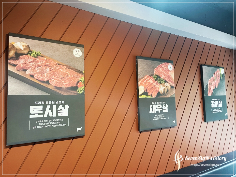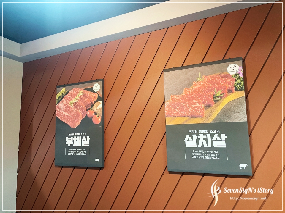 벽에는 회식의 달인에서 맛볼 수 있느 맛있는 소고기 사진과 함께 설명이 있더라구요 ㅎ