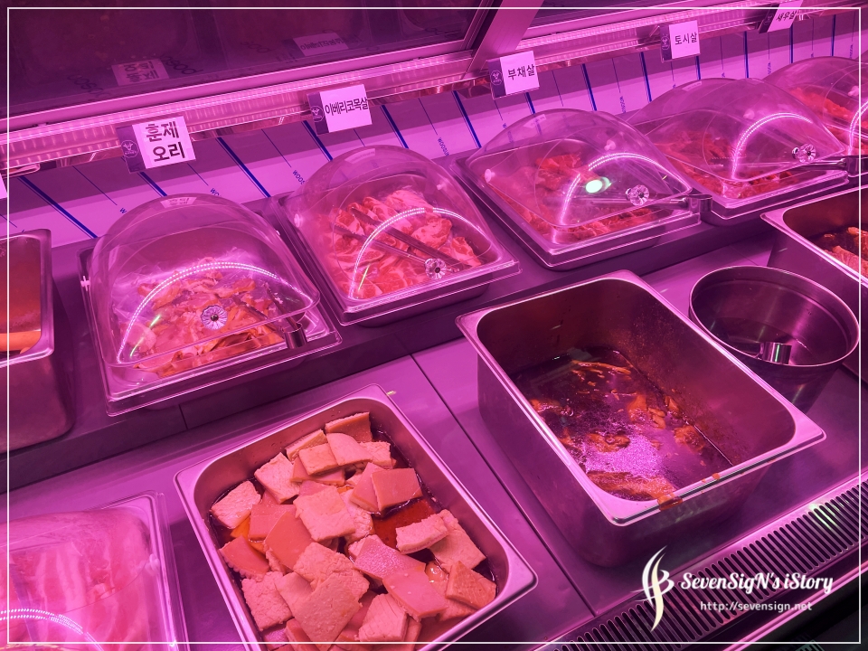 돼지고기와 소고기가 부위별로 아주 잘 정리가 되어있어서