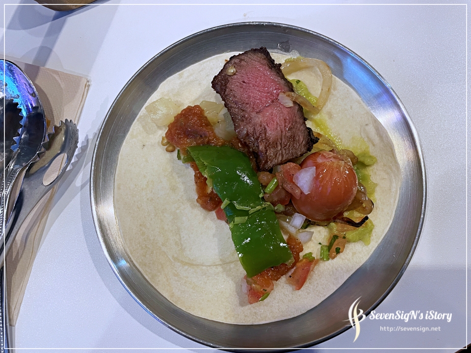 메뉴에는 따꼬라고 써있네요 ㅎ 스테이크 타코는 수비드 스테이크와 소시지, 그리고 야채를