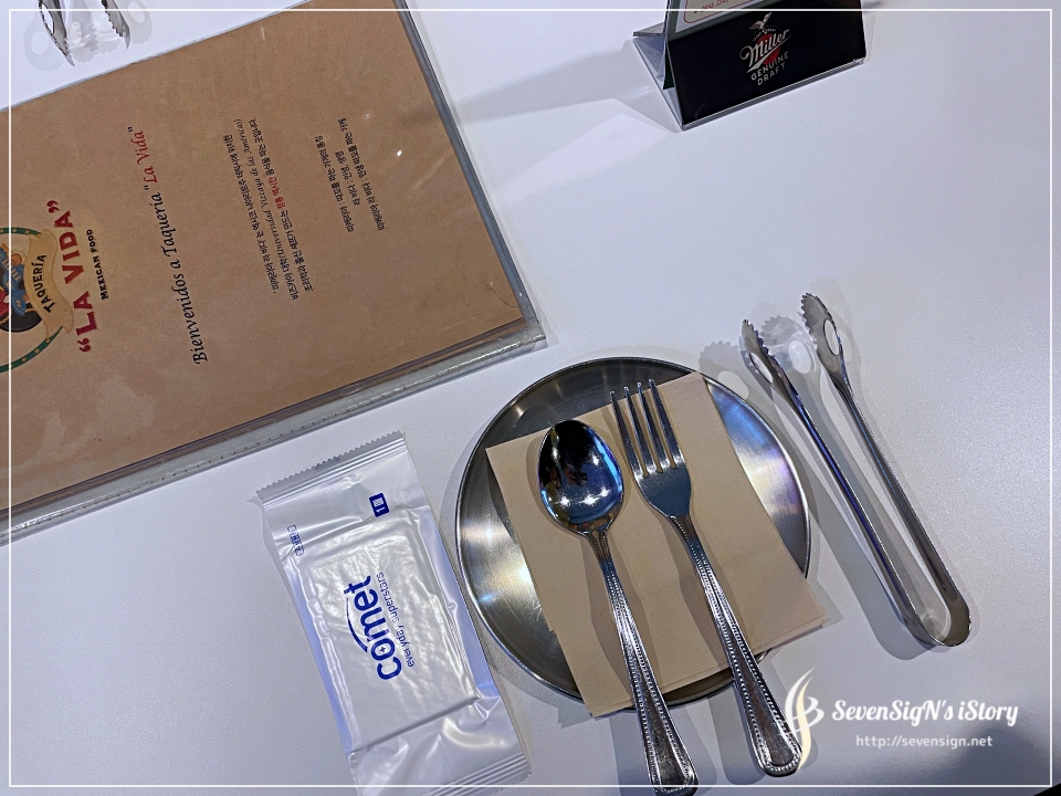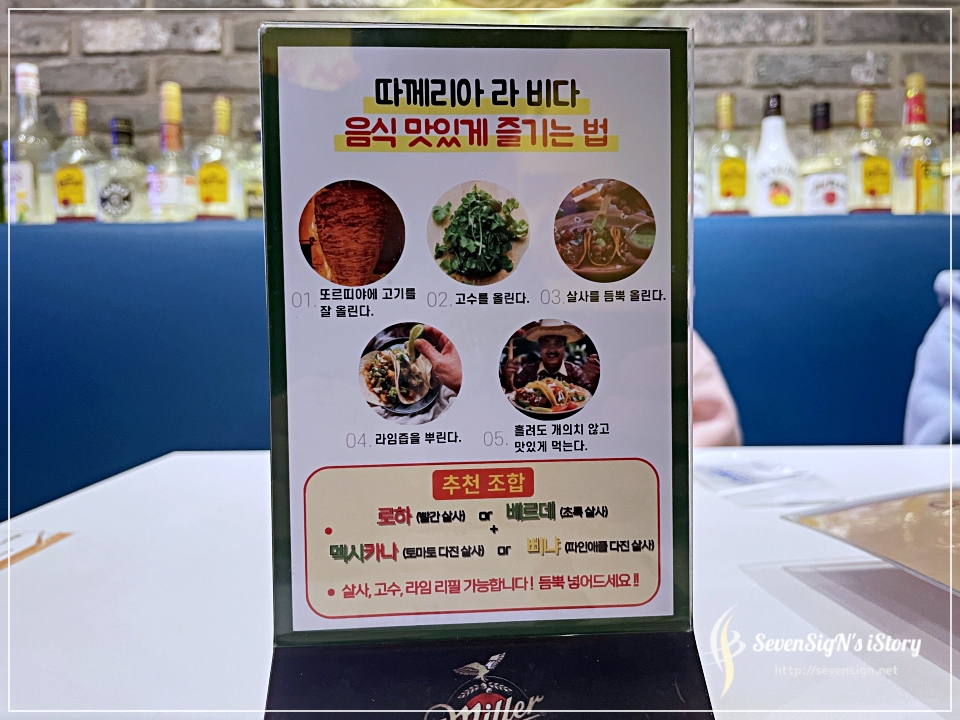 테이블에 앉으면 따께리아 라 비다에서 맛있게 먹는 법이 있는데