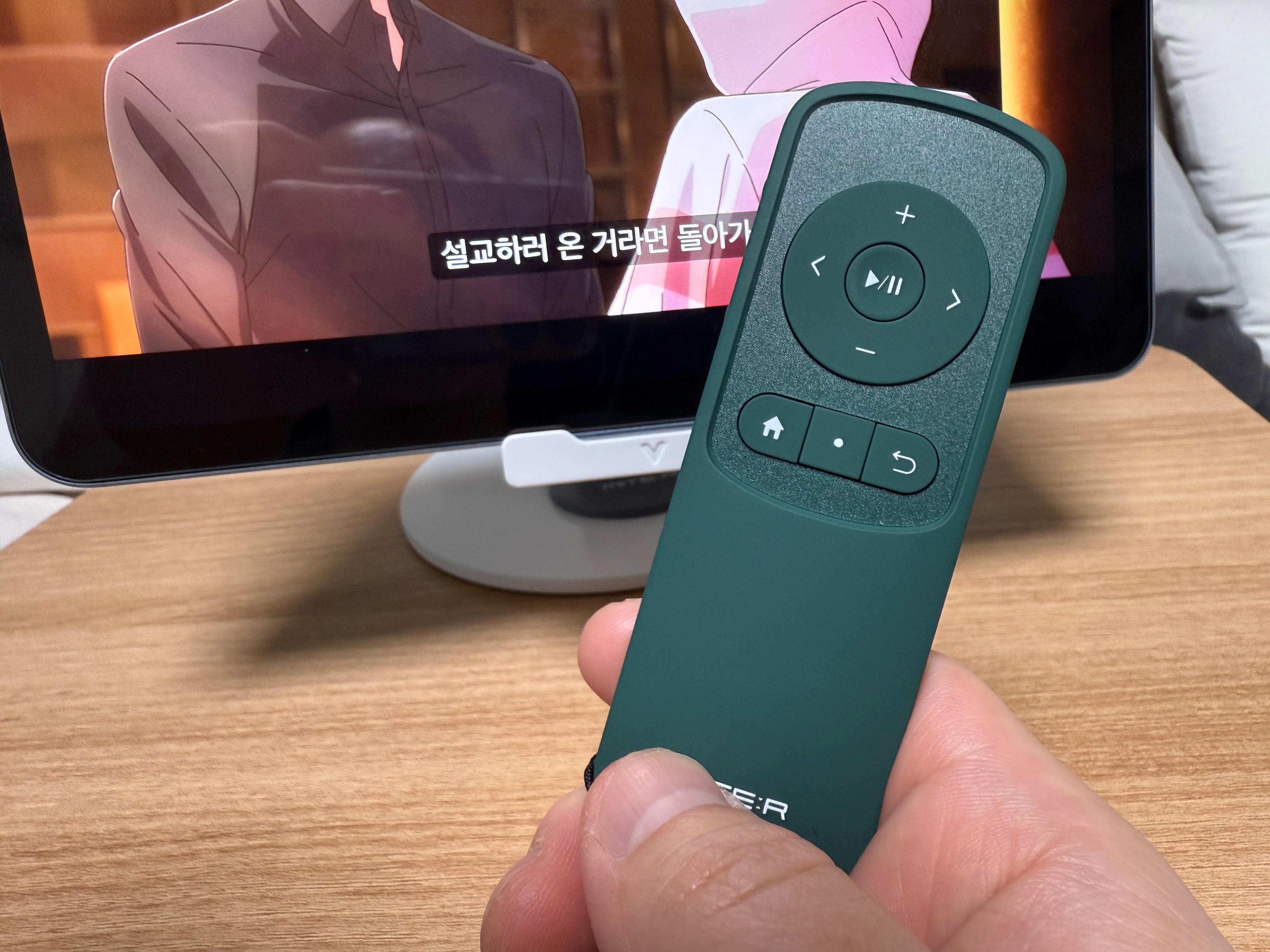 | 이렇게 미니 거치대에 거치를 해두고 미테르 블루투스 리모콘 사용하면 넷플릭스나 유튜브 영상을 즐길 때 리모콘으로 조작할 수 있기도 합니다. 애플TV 리모콘과 비슷한 크기로 보시면 되요.