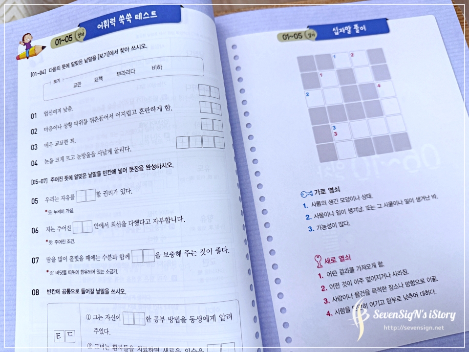 독해 공부 이후에는 어휘력테스트와 함께 십자말풀이를 하면서