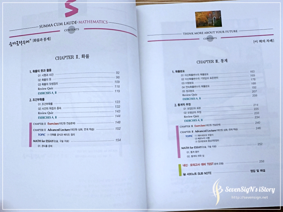 숨마쿰라우데 수학기본서 확률과 통계 편입니다.
