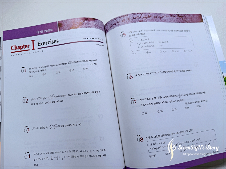 추천 많이 받고 있는 숨마쿰라우데 수학기본서 수학1로 선택을 해봤습니다.