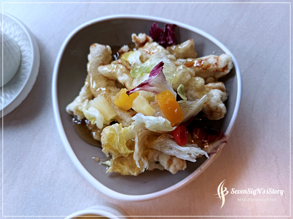A세트는 탕수육과 칠리새우, 유산슬, 그리고 후식 식사로 구성이 되어있습니다.